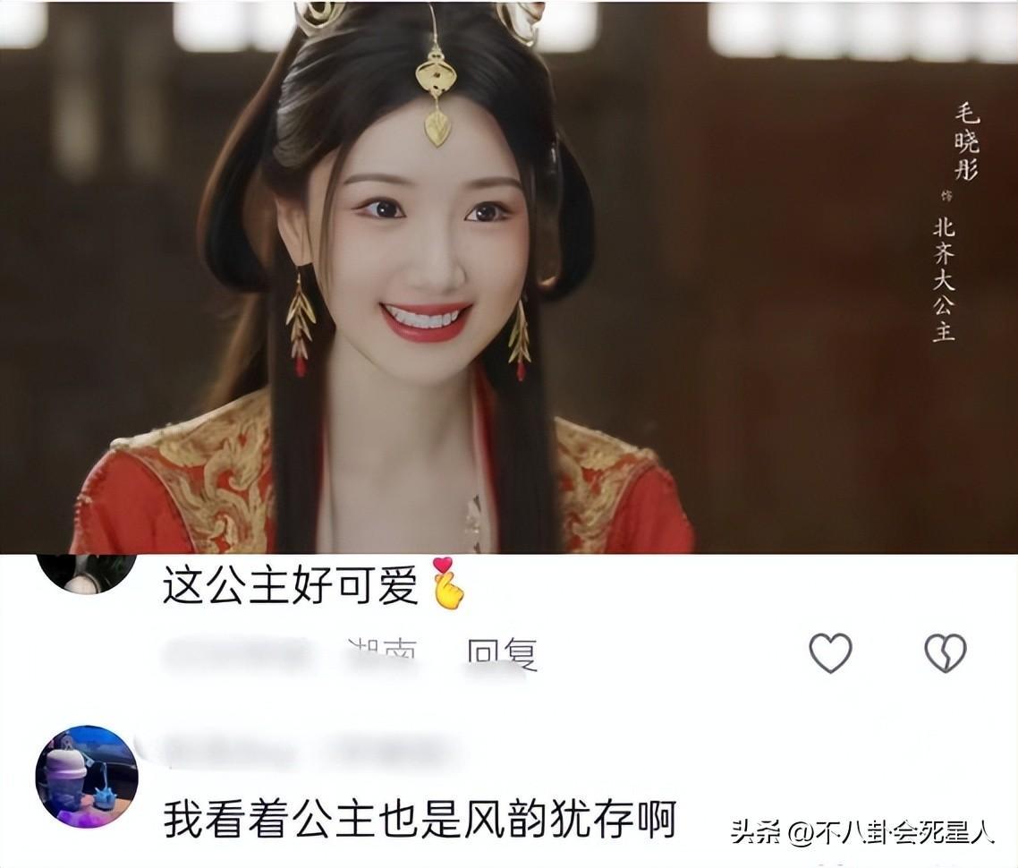 毛曉彤扮演的北齊大公主,也是新增的角色,她在劇裏服飾較多,符合公主身份。毛曉彤笑容甜美,五官精緻秀氣,第一眼就能吸引人的目光。