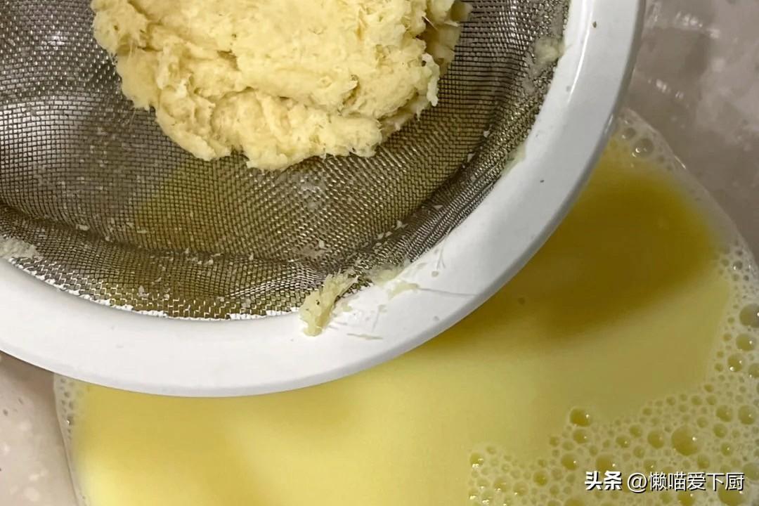 生薑洗淨後去皮切小塊,放入榨汁機或破壁機中攪打出薑汁,榨汁的時候可以加少量純淨水,然後將榨出來的薑汁連通渣子一起倒入紗布中,紗布底下要放個盆,等薑汁完全過濾到盆中後,再用手緊攥紗布,用力擰出多餘的薑汁,再大火燒開,放涼後分裝入小杯子中保存起來,每天早上取1小份兌水喝。