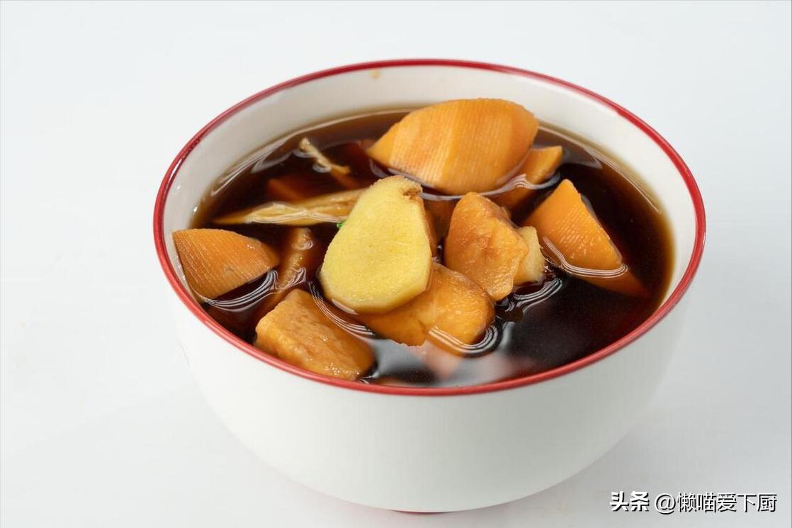 生薑搓洗乾淨後切薄片,鍋中加足量清水再放入生薑,大火煮15分鐘後,敲入1個雞蛋,然後用筷子順着一個方向攪拌幾下,讓雞蛋成型,繼續煮5分鐘後放入紅糖,再煮3分鐘就可以盛出來享用了。