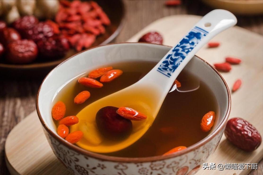 生薑切薄片,紅棗最好去核,一起下入鍋中後加些清水,大火將水煮開後轉小火煮20分鐘,出鍋前5分鐘放適量枸杞、紅糖即可,枸杞切記不要煮太久!