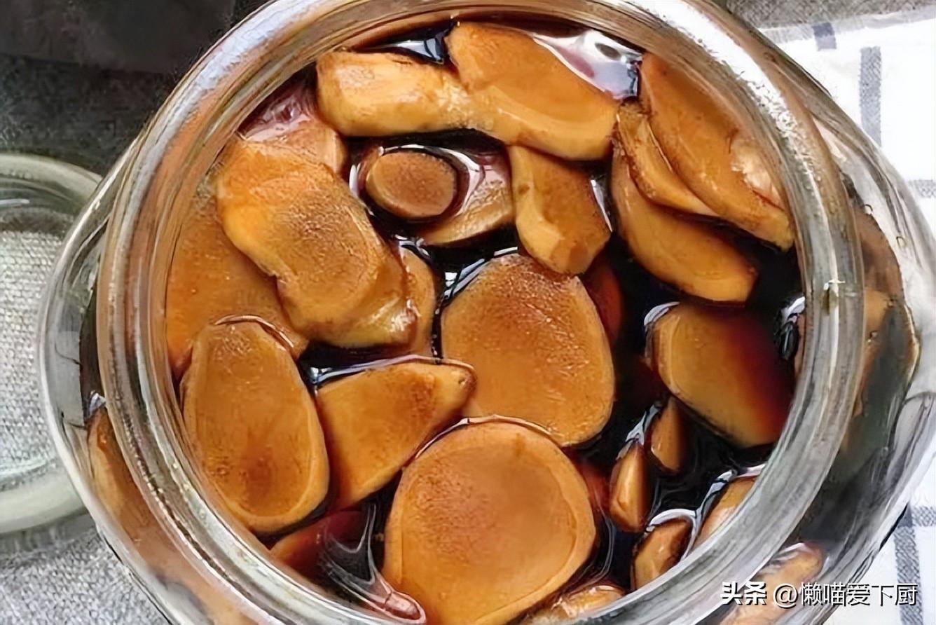 新鮮的生薑搓洗乾淨,晾乾水分後切成薄片,再放入乾淨、乾燥的容器中,倒入陳醋,醋的量要能完全蓋過生薑,然後蓋上蓋子密封起來,放入冰箱中冷藏一週左右,就可以取出來享用了,每天早上喫2-3片,不要貪喫。