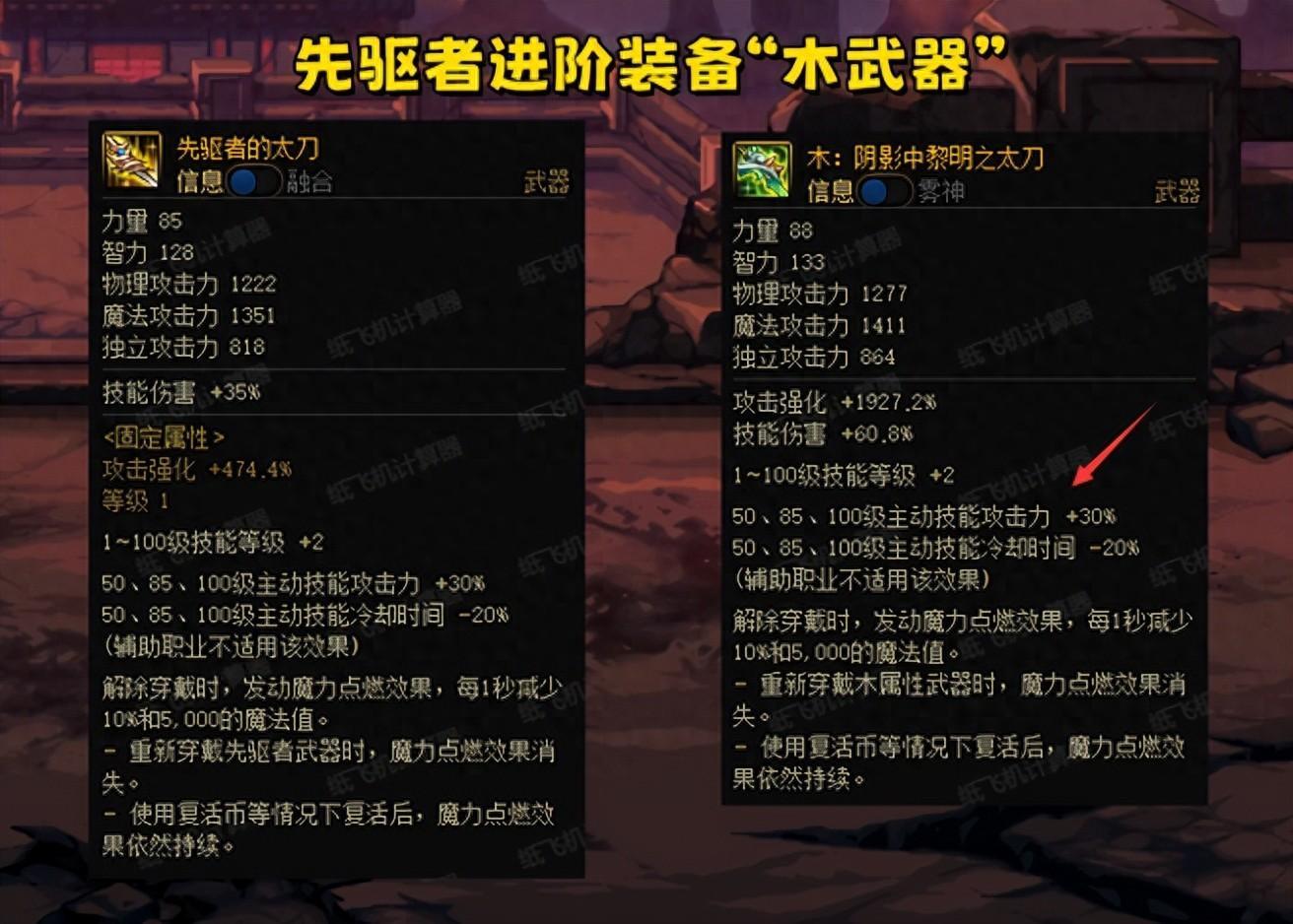 【1】“木武器”,這把武器繼承了先驅者武器的核心屬性,lv1-100技能等級+2,三個覺醒技攻+30%,三個覺醒冷卻-20%!