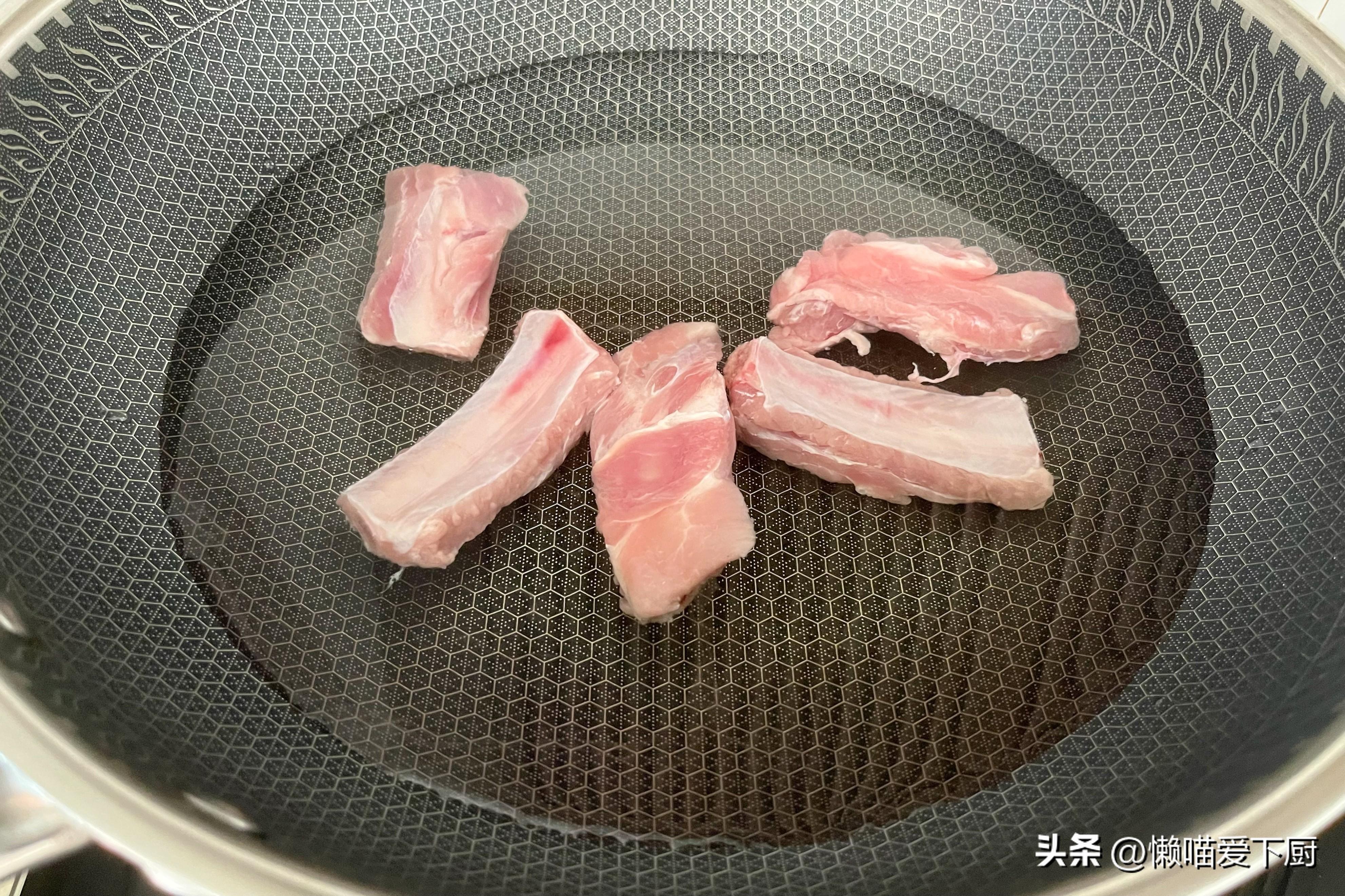 1、排骨斬成小塊,冷水下鍋,加些料酒,煮出浮沫後,撈出來洗乾淨;
