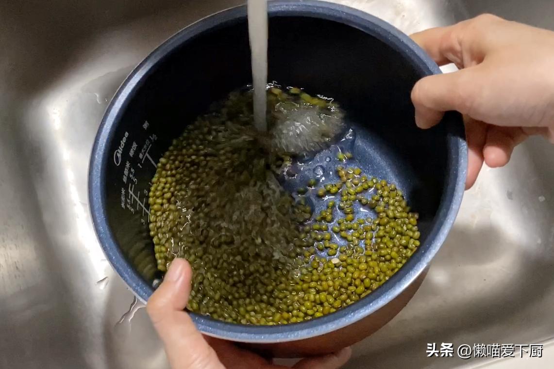 1、綠豆淘洗乾淨,提前放入清水中浸泡2-3個小時;