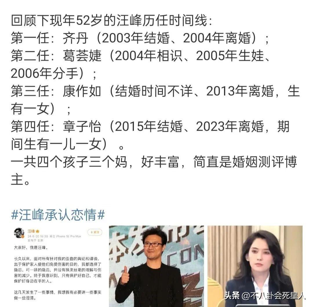 有博主扒出汪峯與幾位前任的時間線,確實銜接得很緊湊,他的婚史應該是娛樂圈最多的了吧,被稱爲“婚姻測評博主”。