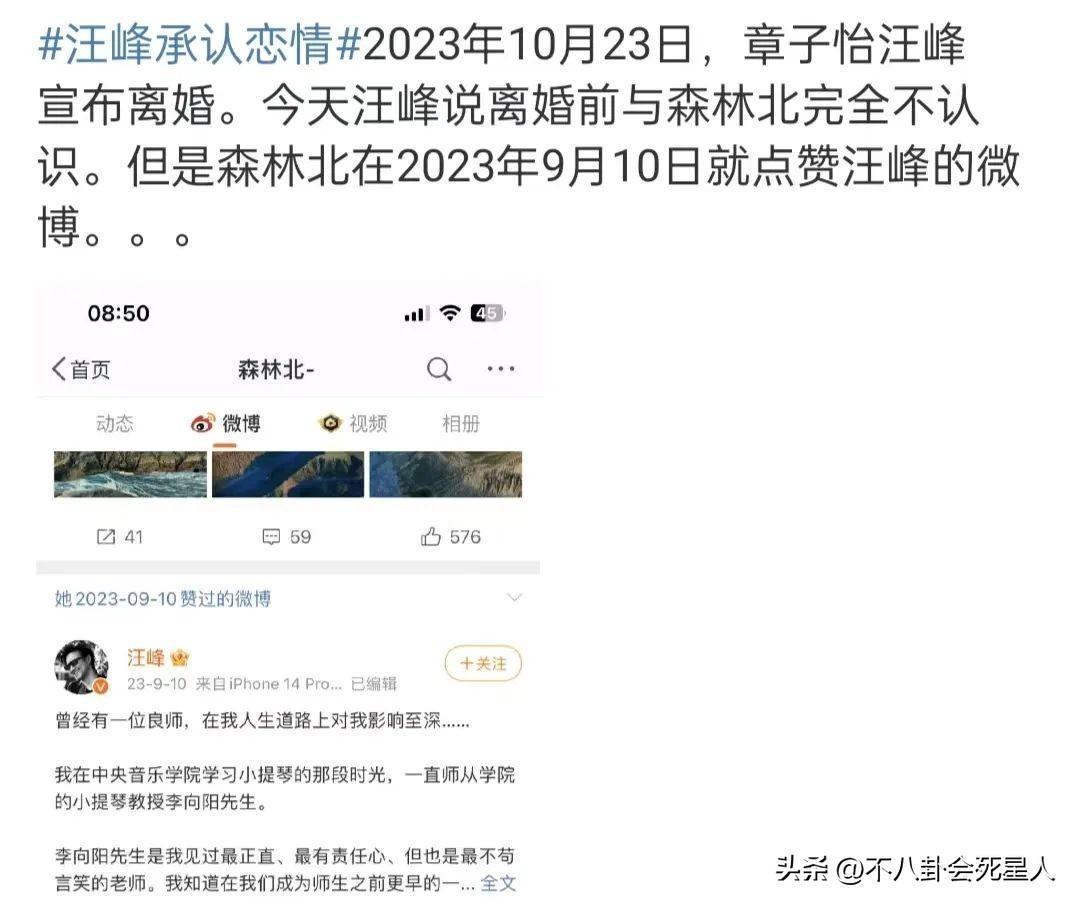 但是,眼尖的網友發現,當初汪峯官宣和章子怡離婚的時候,他的新女友森林北點讚了,似乎早就有跡可循。