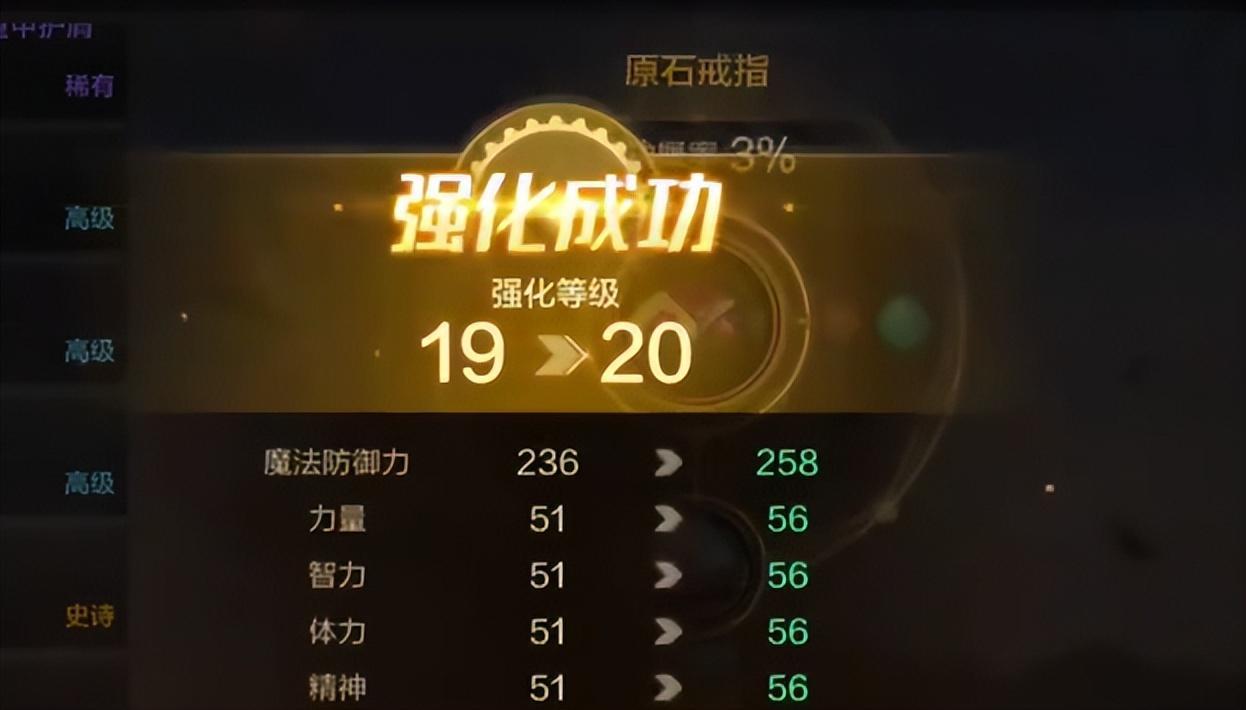 但無論如何,只要堅持強化,最終將裝備強化到20級是勢在必得的,主要是低等級裝備消耗材料比較少,多強化幾次也無關緊要。