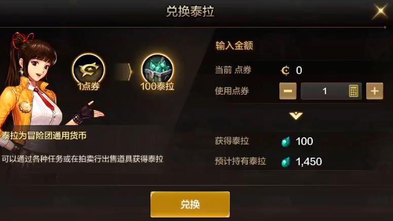 在手遊中點券可以直接兌換泰拉,泰拉可以購買拍賣行中的道具,比如裝備、禮包、幸運符等等,1R=1000泰拉,但這個性價比很低。