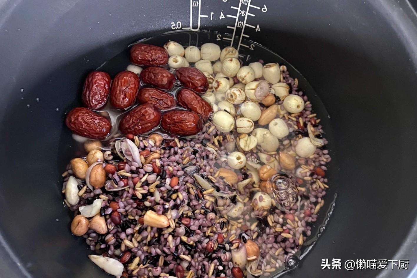 1、準備一些自己愛喫的五穀雜糧,比如各種豆子、不同顏色的大米、蓮子、花生、紅棗等等,最好能湊夠8樣;