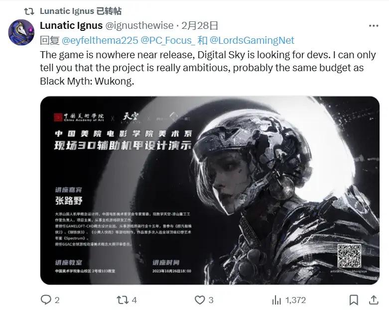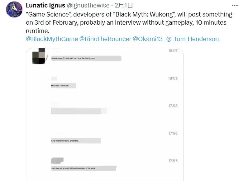 同樣是在2月,Lunatic Ignus也曾發佈過一條關於《黑神話:悟空》的爆料,但不管怎麼看,這位國外舅舅黨也只是把國內QQ羣的聊天記錄拿機翻過了一遍,根本不像是掌握了一手情報的業內人士。