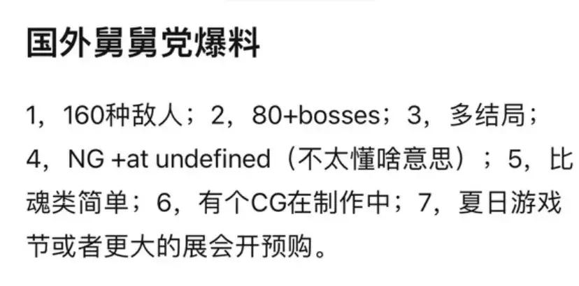 玩傢俬底下推測遊戲體量並無不妥,但要是謠言被當成實錘傳開,路人玩家的期待值被無限拔高,到時候遊戲正式發售卻被追溯“根本沒有什麼80種Boss啊”難免就有些無辜。