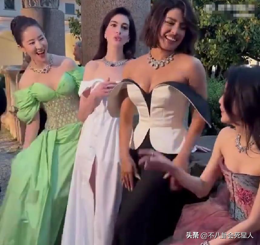 而且可以看到,劉亦菲熱情側身和她們交流的時候,站在劉亦菲身邊的安妮海瑟薇的身體並沒有轉向劉亦菲。