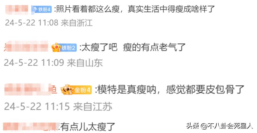 有網友覺得劉雯“瘦脫相”了,就算是超模,但有網友覺得劉雯瘦得“皮包骨”,臉都凹進去了,顯得老氣了,照片中看着已經這麼瘦,真人不知道瘦成什麼樣子。