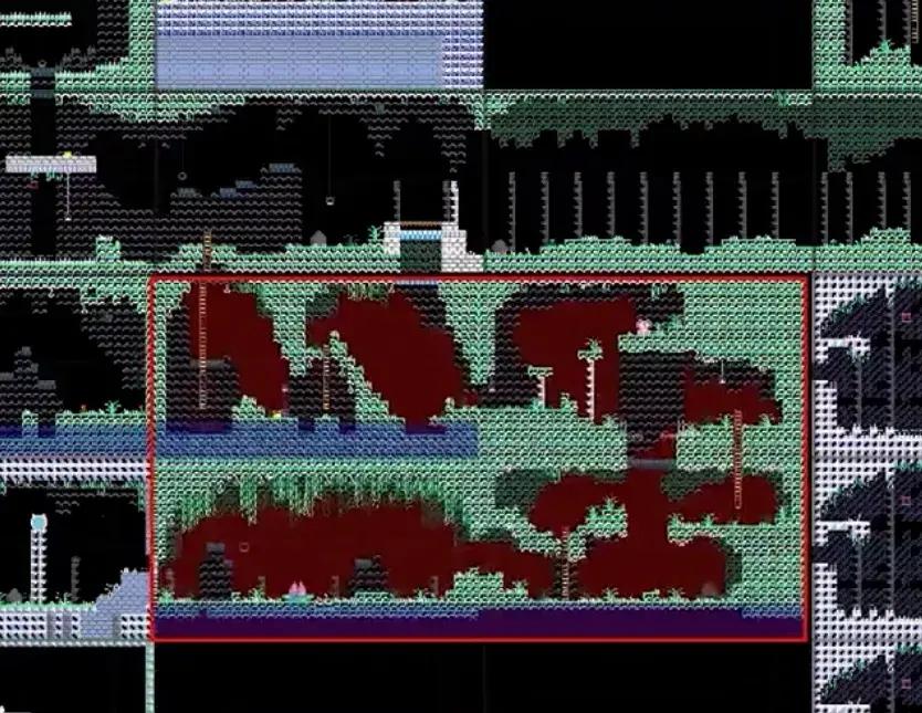 爲了實現最終的美術風格,他其實是把遊戲的畫面的成型分爲好幾步來實現。第一步中,只由基礎像素色塊構成的畫面,很符合我們對幾十MB遊戲畫面的想象。