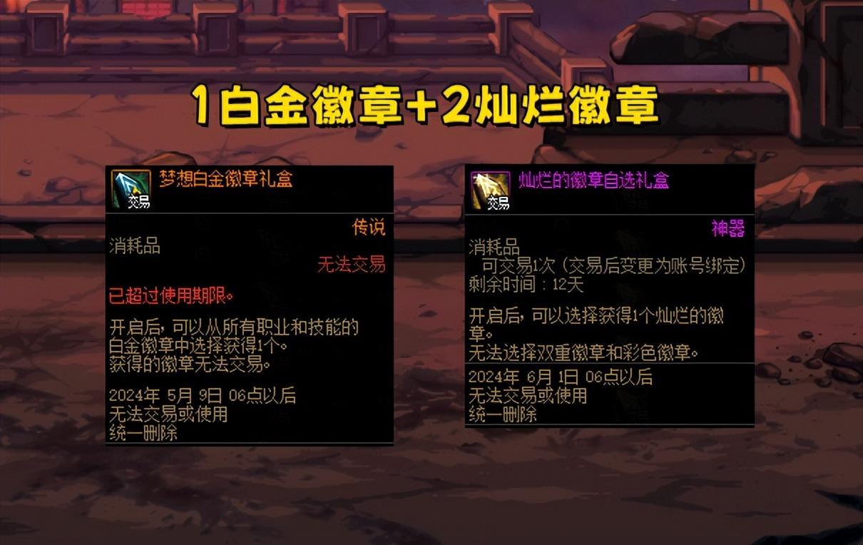所以這段時間大家也不要再去買白金徽章和燦爛徽章了,下個月上線就會送,拍賣行也會進一步降價的。