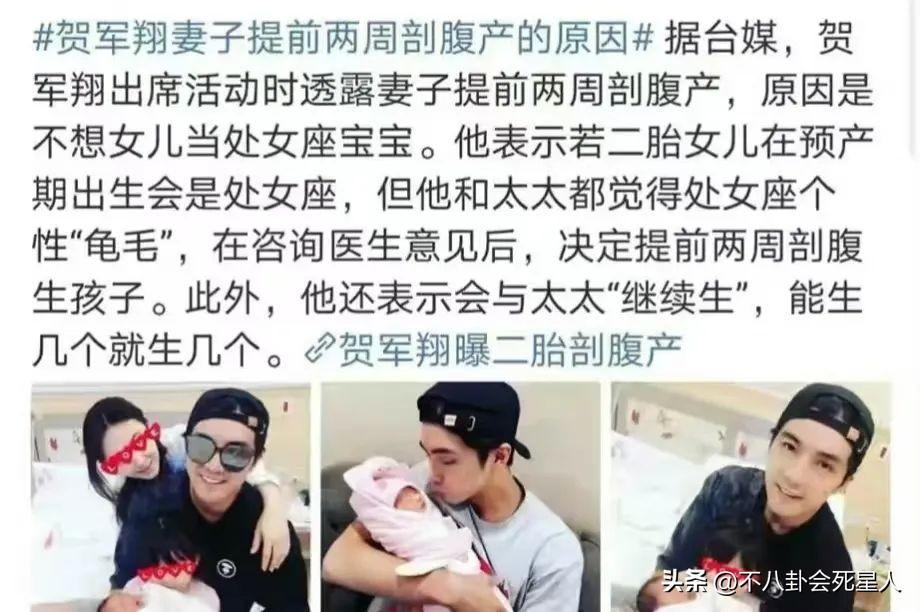 另外,賀軍翔老婆生產時,比預產期提前剖腹了兩週,原因是不想女兒當處女座寶寶,賀軍翔和他老婆都不喜歡這個星座,便在諮詢醫生意見後提前生產。