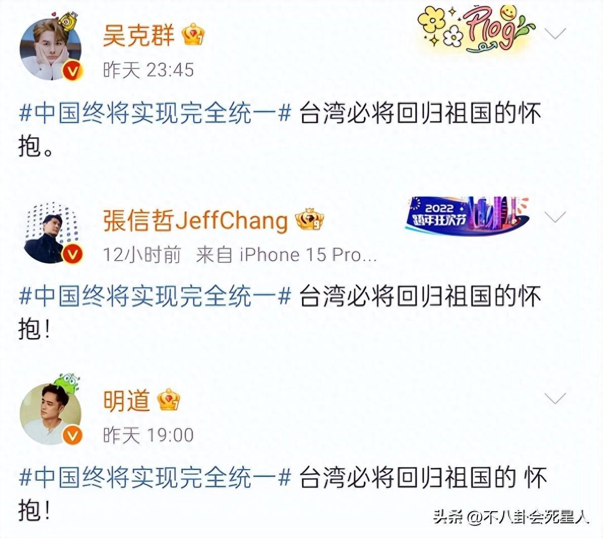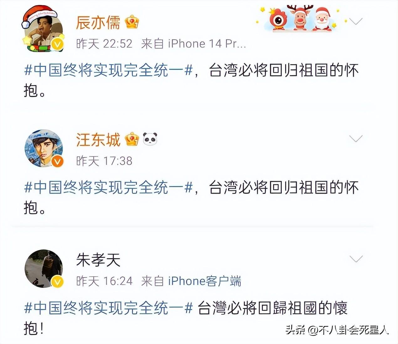 吳奇隆陳志朋轉發終將實現統一,蘇有朋沉默,許光漢評論區淪陷