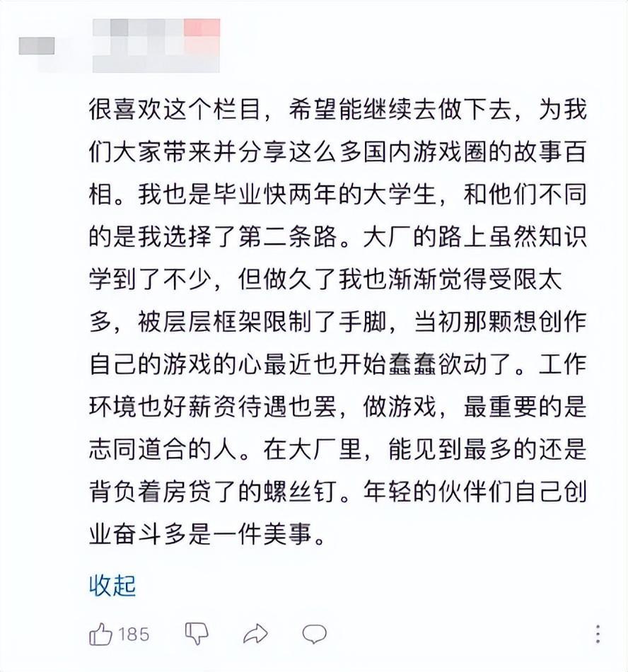 四方向我提到,他在畢業時曾收到米哈遊的offer,網易的面試推進得也很順利,甚至父母爲他規劃了一條考研再就業的道路,但他還是希望留下來完成自己的“事業”。四方說自己從沒因爲這個選擇後悔過,但他很難要求其他人和自己一樣,始終抱有最初的熱情。