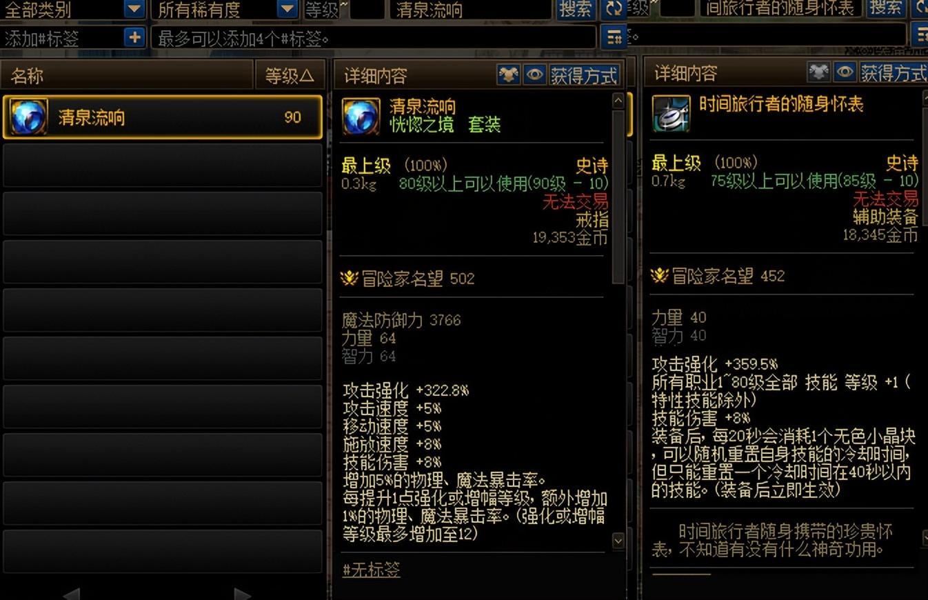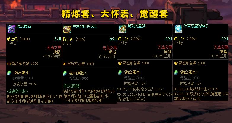 “遺忘魔石”釋放技能時有1%幾率初始化1個技能冷卻;“逆轉的時光記憶”釋放技能時有10%幾率使該技能初始化冷卻,這2件裝備就有點“精煉套”和“懷錶”的感覺了;