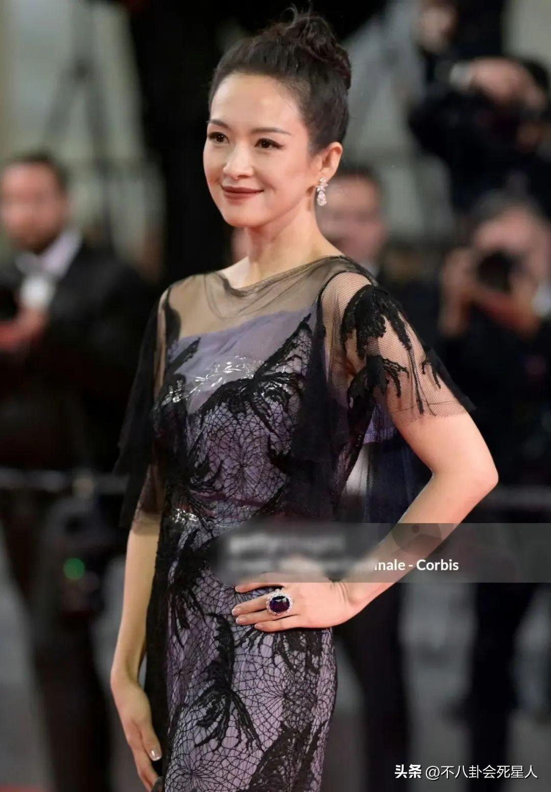 除此之外,章子怡還有一套紗裙禮服,同樣美得令人移不開眼。