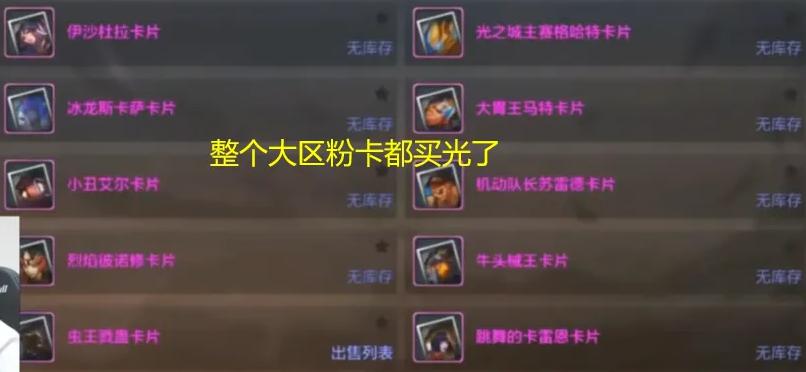 然後就到了寶哥展現鈔能力的時刻了,直接掃光了整個大區的粉卡,差一點就買完了;連胚子卡都漲價到二十多萬,這就是傳說中的一個人養活一個大區了。
