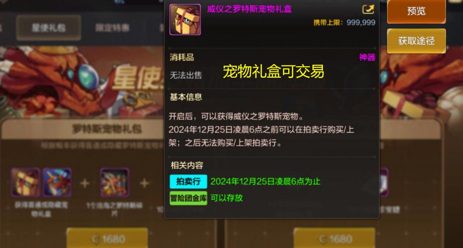 (3)拍賣行購買,禮包中的寵物是可以交易的,大佬用點券買了寵物,然後搬磚黨就可以用泰拉購買,相當於一個用點券換泰拉的過程!