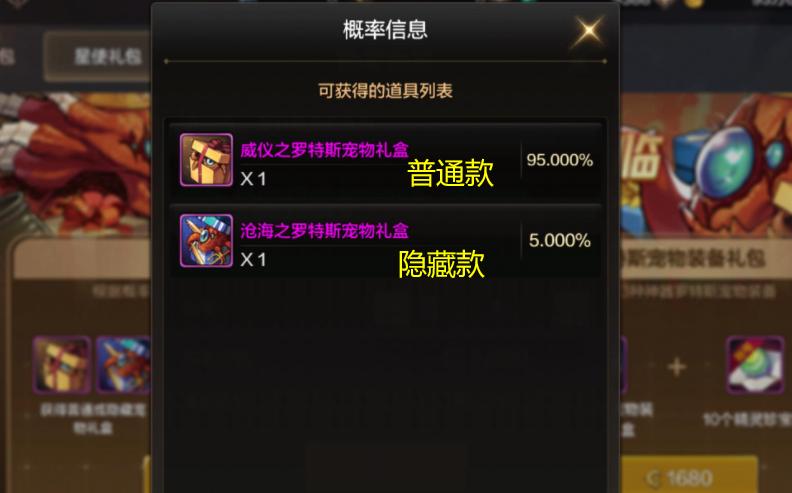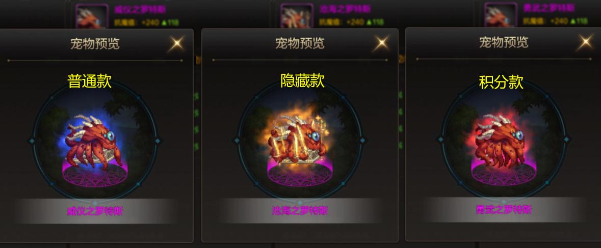 寵物禮盒中有5%幾率開出“隱藏款寵物”(或者用10個碎片換隱藏款),但隱藏款、普通款、積分商城款這3種寵物的屬性都是一樣的,只有外觀不同而已。