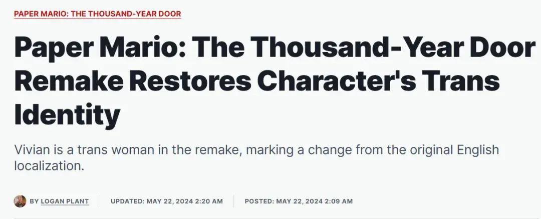 5月23日,NGC平臺名作《紙片馬力歐RPG》(千年之門)迎來了重製版發售的日子,除了遊戲本身,圍繞着這款作品的討論還涉及一項社會命題:角色“薇薇安”的性別到底是男還是女?