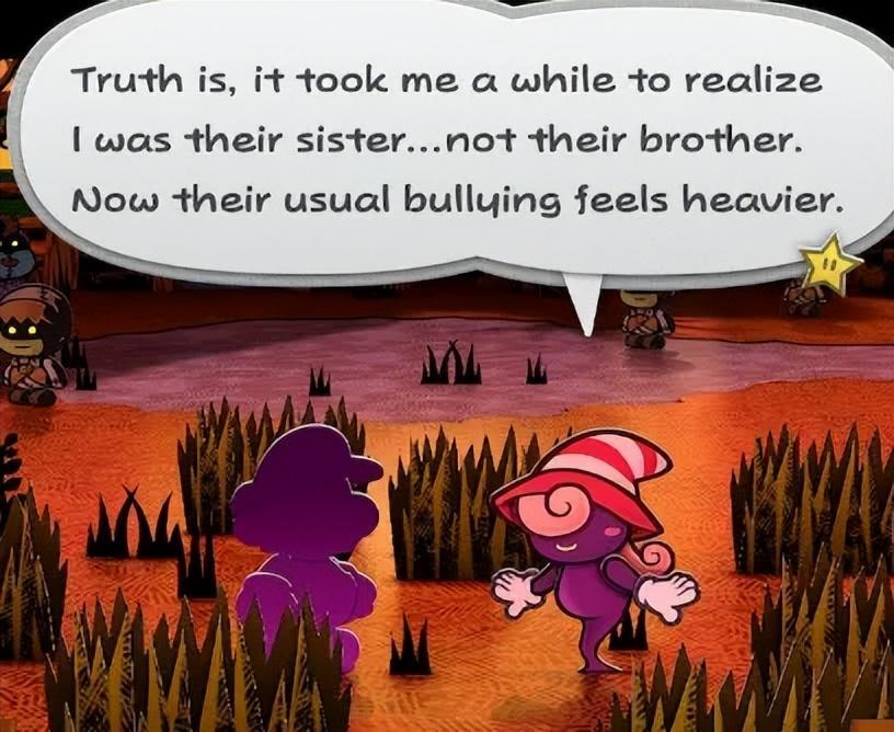 到了如今發售的《紙片馬力歐RPG 重製版》中,英文版的所有文本描寫都佐證着薇薇安是女性的事實,而她也如衆人所願,向馬力歐承認了自己的女性身份:“我是她們的妹妹,不是她們的弟弟。”