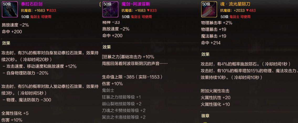 如果沒有40級史詩武器,還可以選擇“泰拉石巨劍”“流光刀”“魔劍”等武器,更推薦泰拉石武器吧,獲得相對簡單。