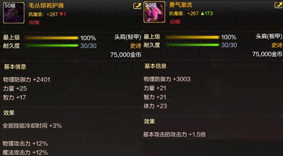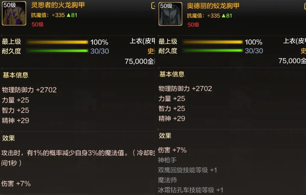 這2件裝備都可以直接增加7%傷害,火龍上衣有減少魔法值的負面效果,不過影響不大、完全可以用。