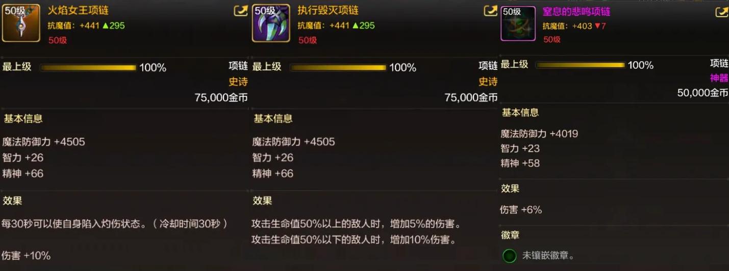 替換項鍊推薦“悲鳴項鍊”,增加6%傷害,提升肯定不如上面2件史詩項鍊,但獲取特別簡單,直接製作即可。
