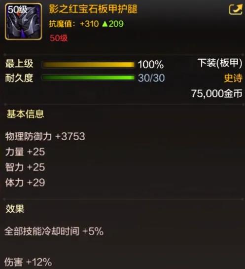 全技能冷卻時間+5%,傷害+12%,現階段最強的散件護腿,沒有之一,所有輸出職業都可以選擇這個護腿!