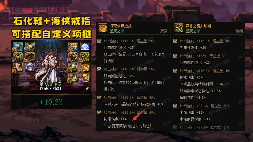 同時如果不佩戴魔女戒指的話,還可以把項鍊部位換成自定義,到這裏整體提升就來到了10%左右。