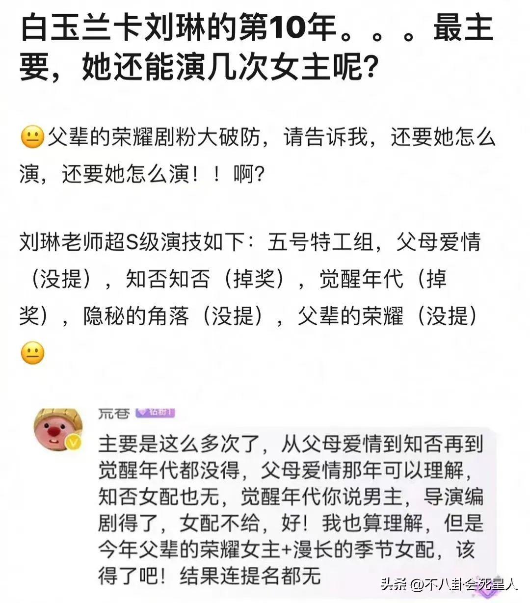 值得注意的是,劉琳被白玉蘭獎“卡”了10年了,《父母愛情》《知否》《 隱祕的角落》全都無緣,着實可惜。