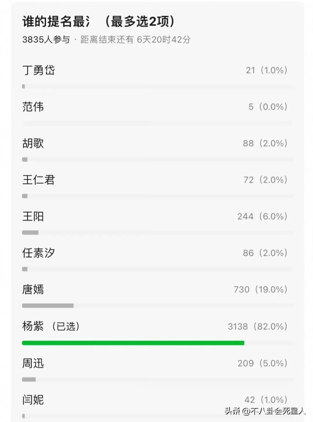 甚至有網友發起了投票,讓大家來選提名最“水”的演員,楊紫票數最多,斷層拿到第一。