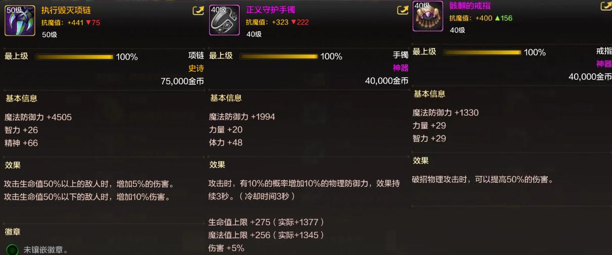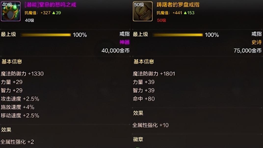「裝備徽章」“武器+上衣+下裝+冒險勳章”推薦力量;“頭肩+腰帶”推薦攻速;“鞋子+手鐲”推薦移速;