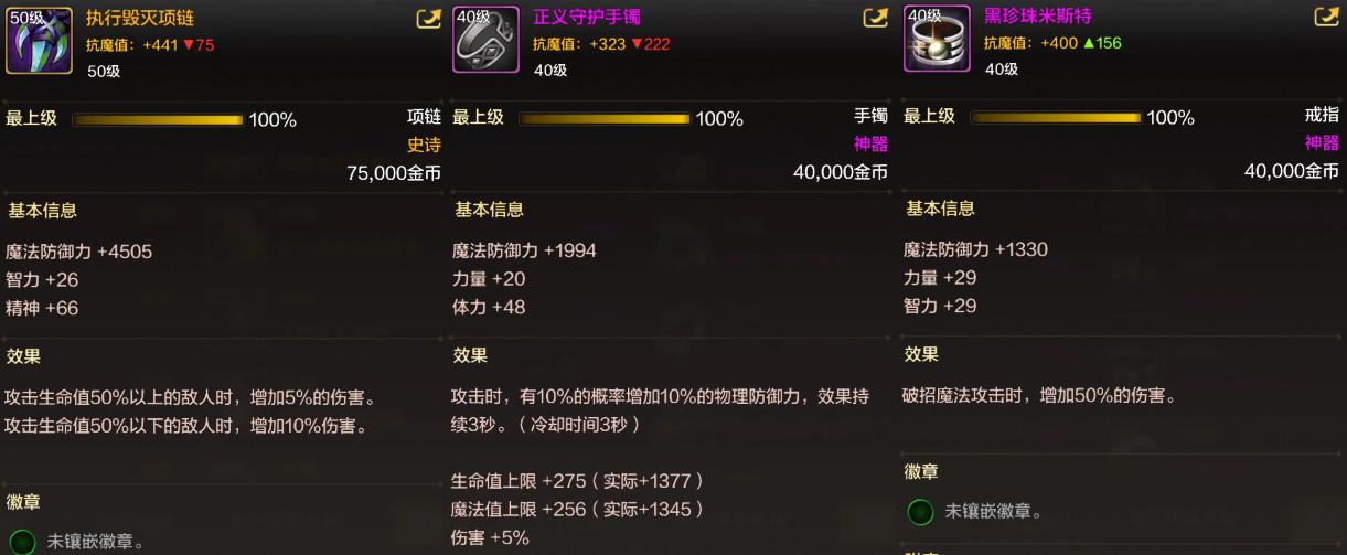 「首飾」比較標準的畢業3件套是“正義手鐲+執行毀滅項鍊+黑珍珠”。