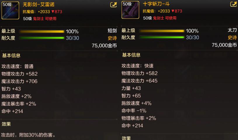 「武器」首選肯定是“無影劍”,不僅屬性優秀+30%附加傷害,而且名聲在外,幾乎是所有鬼劍士的夢想。