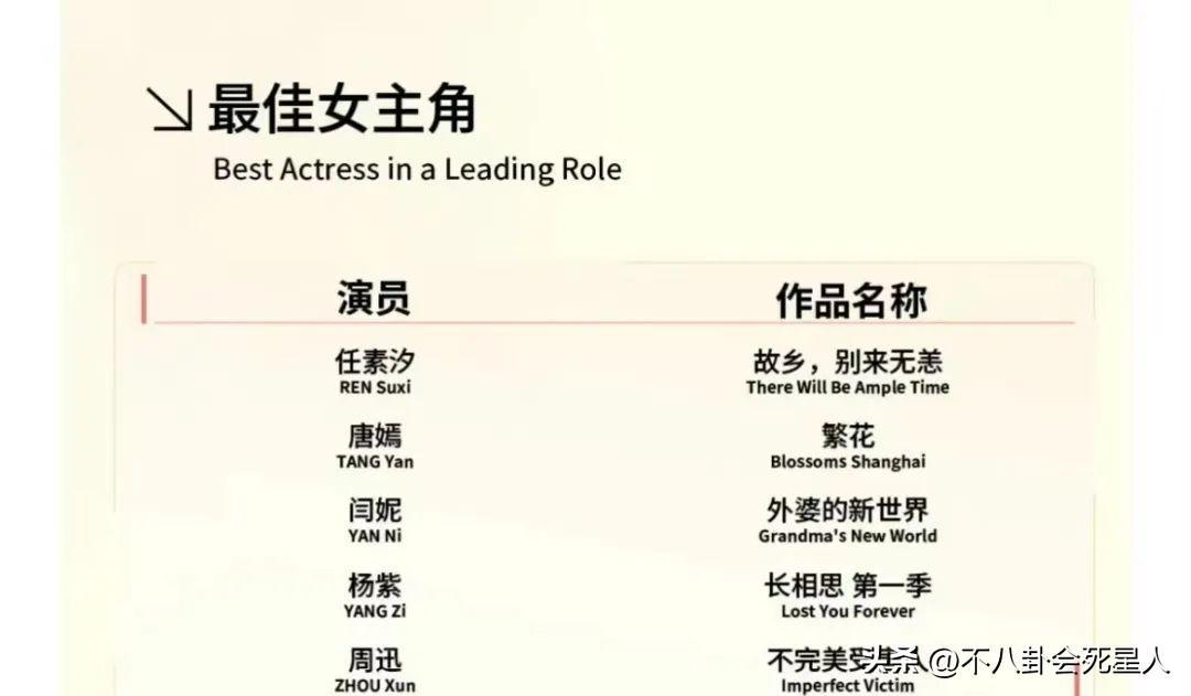 當然,一切都是推測,畢竟入圍的任素汐、閆妮也都是實力派,角逐激烈,唐嫣不一定就能得獎。