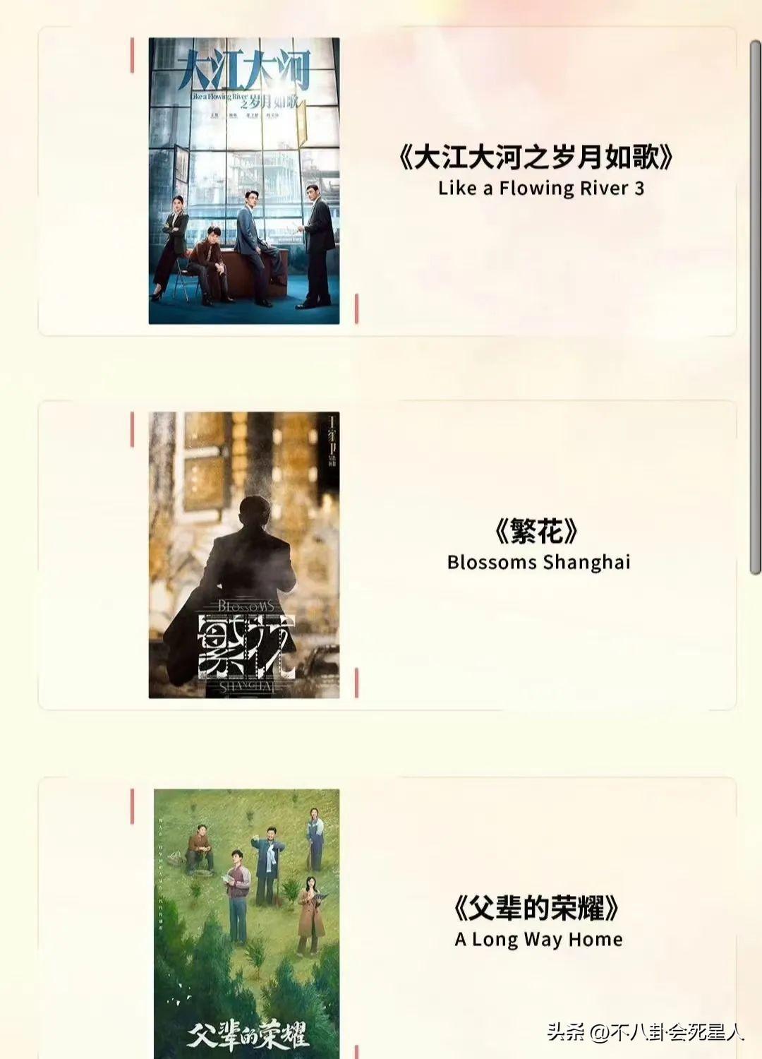 此外,就電視劇入圍的名單來看,《追風者》《不完美受害人》《南來北往》《父輩的榮耀》《繁花》等多部作品上榜。