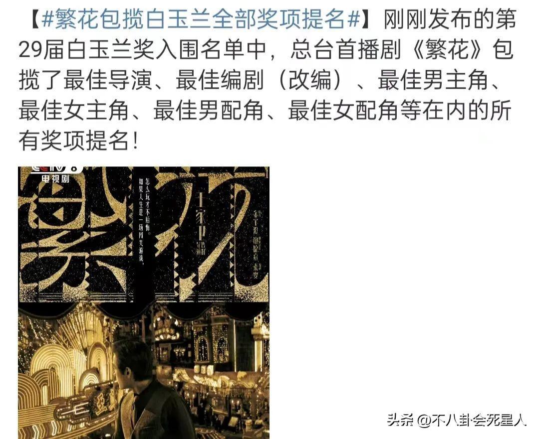 其中,《繁花》可謂是最大的贏家,包攬了白玉蘭的所有獎項提名,包括最佳電視劇、最佳導演、最佳編劇等等。