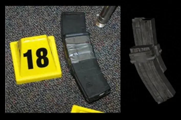 左圖爲槍擊案現場遺落的彈匣照片,右圖爲《使命召喚》彈匣截圖