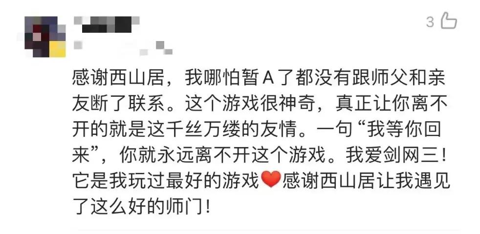 事實上,這的確也是西山居的企業文化。他們將“成爲遊戲玩家的聖地”寫進了公司發展願景裏,並且始終在和玩家做共鳴,舉辦《劍網3》電競賽、召開同人嘉年華……西山居用玩家喜歡的方式和玩家站在一起,玩家自然也會與公司形成雙向的情感交流。