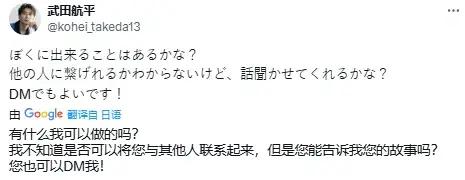 武田航平是最早在原貼下公開回復的演員,他在當天傍晚留言表示願意提供幫助。