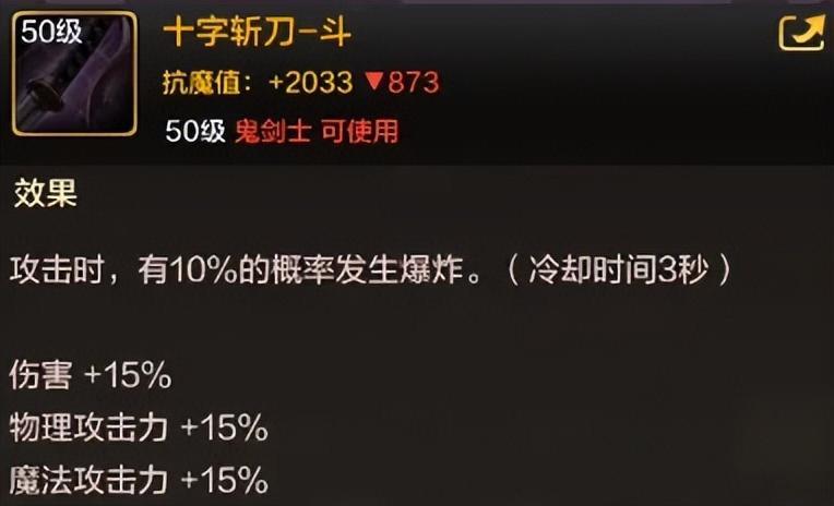 而“十字斬刀”就差一點了,+15%傷害、+15%雙攻,並不比子午七星劍優秀多少,所以沒必要單獨選擇。