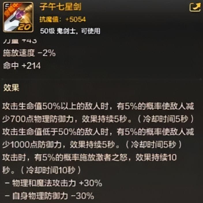 所以如果追求理想的畢業武器,肯定更推薦“子午七星劍”!
