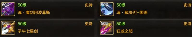 狂戰士4把史詩巨劍的大概排名是這樣的:子午七星劍>狂龍之怒>魂-魔劍>魂-裁決刃。