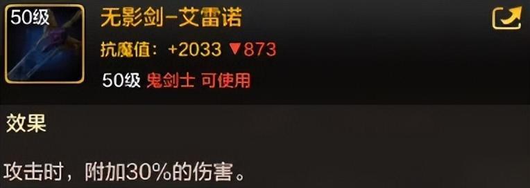 “無影劍”簡單暴力增加30%傷害,還是很不錯的,如果爆出來的,那麼真的可以作爲次畢業武器選擇;