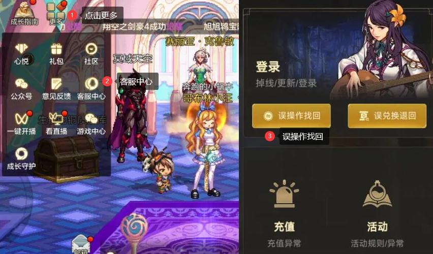 點擊左上角的“更多”——客服中心——誤操作找回/誤兌換找回!